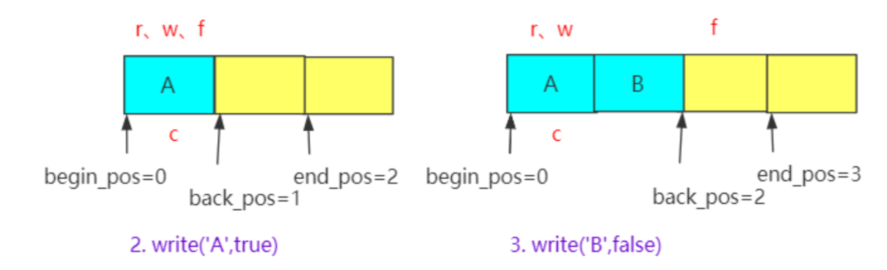 // Compare-and-swap was unseccessful because 'c' is NULL. // This means that the reader is asleep. Therefore we don't // care about thread-safeness and update c in non-atomic // manner. We'll return false to let the caller know // that reader is sleeping. c.set(f); // 更新w的位置 w = f; // 注意这里就是flush返回false的逻辑,所以返不返回false仅和c的状态有关系,所以c就是用来控制唤醒逻辑的变量 returnfalse; //线程看到flush返回false之后会发送一个消息给读线程,这需要写业务去做处理 } else// 读端还有数据可读取 { // Reader is alive. Nothing special to do now. Just move // the 'first un-flushed item' pointer to 'f'. w = f; // 只需要更新w的位置 returntrue; } }
